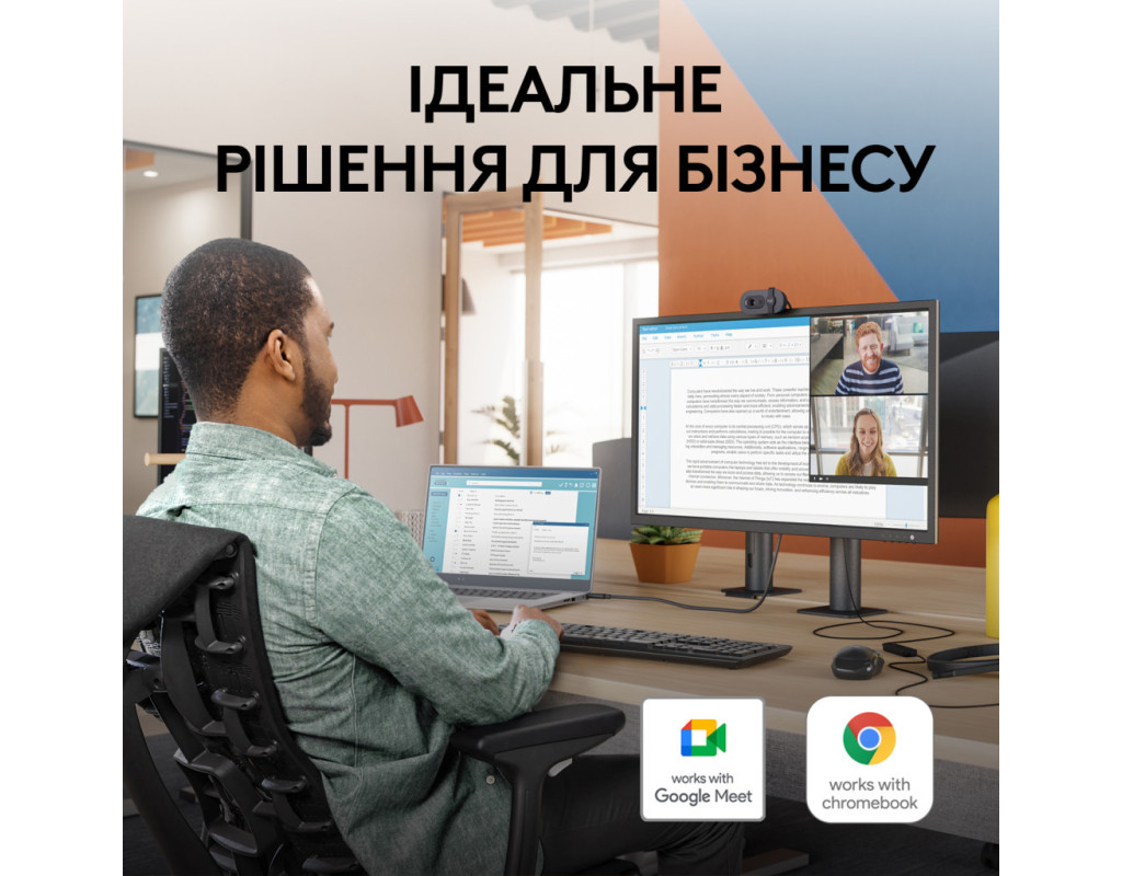 Logitech Brio 105 — вебкамера із хорошою роздільною здатністю 1080p, яка стане чудовим вибором для бізнес-компаній та офісних працівників. Модель знімає чітке відео, яке за допомогою технології RightLight 2 матиме покращену якість зображення навіть в умовах недостатнього освітлення. З Brio 105 співробітники зможуть відчувати себе природно та впевнено на кожній робочій зустрічі. Пристрій оснащений шторкою конфіденційності. що додасть упевненості у тому, що ваша приватність надійно захищена. Вона ковзає по об’єктиву, щоб повністю блокувати камеру в моменти, коли ви її не використовуєте. Вбудований всенаправлений мікрофон чітко записує аудіо на відстані до 1 м, тому ваші розмови завжди звучатимуть природно та чітко. Brio 105 сумісна з провідними операційними системами. Вона сертифікована для Google Meet і працює з Chromebook, а також сумісна із більшістю платформ відеоконференцій. Легко розгортайте та контролюйте Brio 105 за допомогою Logitech Sync. Модель також підтримує технологію Plug-and-Play, завдяки якій достатньо просто під'єднати камеру до вільного порту USB-A на комп’ютері чи док-станції та можна відразу розпочинати відеодзвінок. |