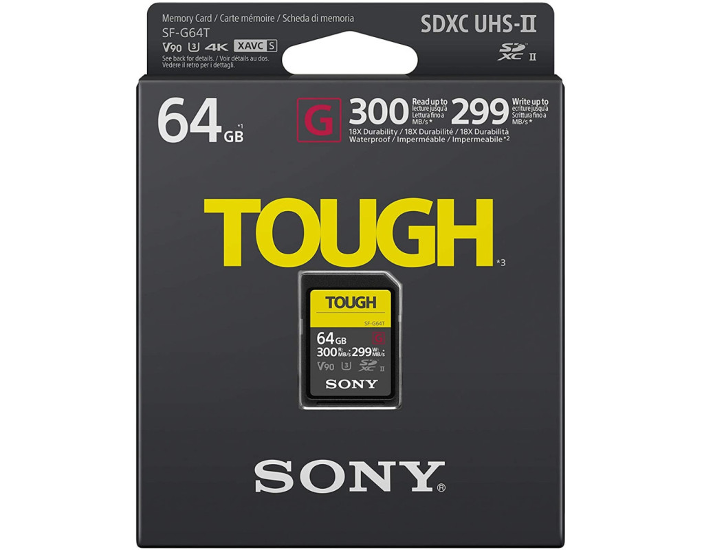 | Представляємо найміцніші й найшвидші у світі карти пам’яті SD. Їх розроблено для професійної зйомки в найскладніших умовах. Карти TOUGH серії SF-G відповідають вимогам професійної зйомки. Вони у 18 разів стійкіші до згинань, ніж звичайні SD-карти, мають клас водостійкості й пилонепроникності IP68 і забезпечують найвищу швидкість зчитування й записування даних – до 300 Мбіт/с і до 299 Мбіт/с, відповідно. |