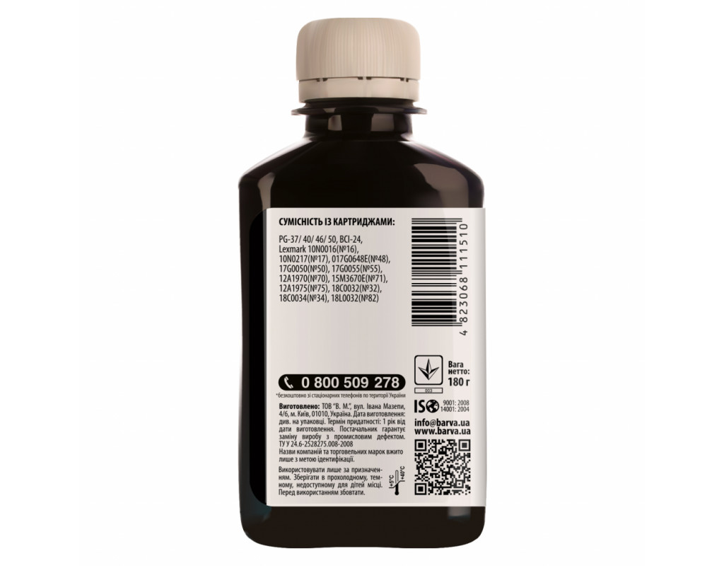 BARVA CANON PG-40 180г BLACK Pigment (C40-081) являє собою якісне чорнило, яке відрізняється високою світло - і водостійкістю, широкою кольоровою гамою і хорошою чіткістю одержуваних відбитків. Зображення надовго збереже яскравість, завдяки впровадженню у виробництво чорнил новітніх наукових розробок.