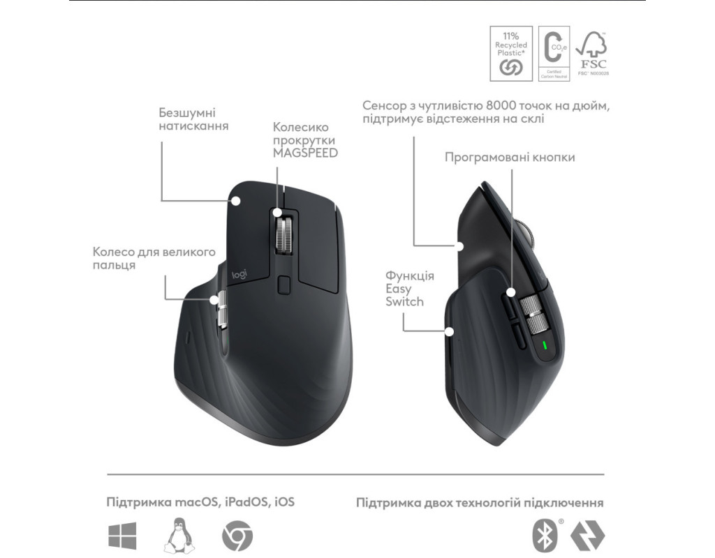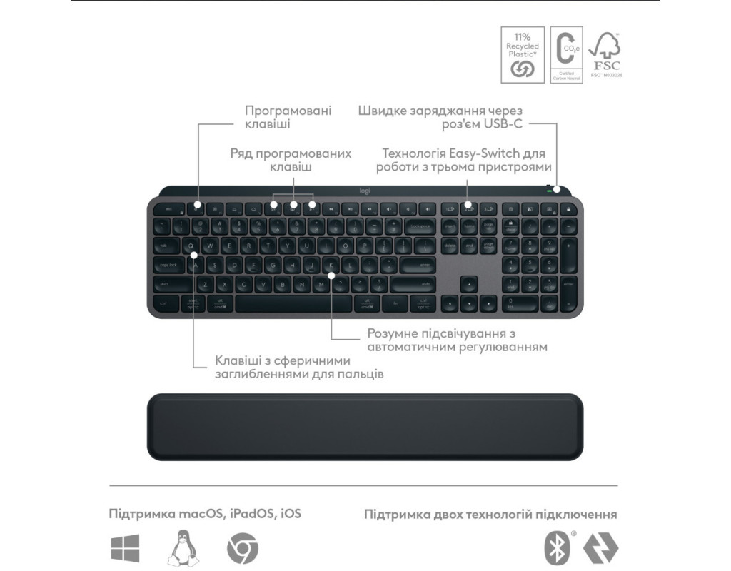 | Представляємо Logitech MX Keys S Combo - найкращий набір точних інструментів, розроблений для зручної продуктивності, яка допомагає вам впродовж годин знаходитися в робочому потоці. Потужність плавного, швидкого та точного набору тексту на клавіатурі MX Keys S поєднується з точним та швидким прокручуванням на миші MX Master 3S. Завдяки MX Keys S ви будете панувати над робочим простором вдень та вночі, завдяки його функціям Smart Actions, які заощаджують час, налаштованому розумному підсвічуванню, та мишою MX Master 3S що підвищить вашу продуктивність завдяки кнопкам Quiet Click, надшвидкому прокручуванню Magspeed та оптичному сенсору з роздільною здатністю 8K DPI, який відстежує рух навіть по склу. |