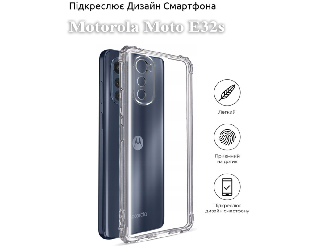 сумісність з моделями - Motorola E32s, Тип чохла для телефону - накладка, Призначення - модельний, Колір - прозорий