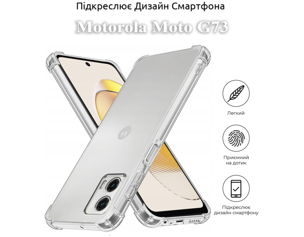 сумісність з моделями - Motorola Moto G73, Тип чохла для телефону - накладка, Призначення - модельний, Колір - прозорий