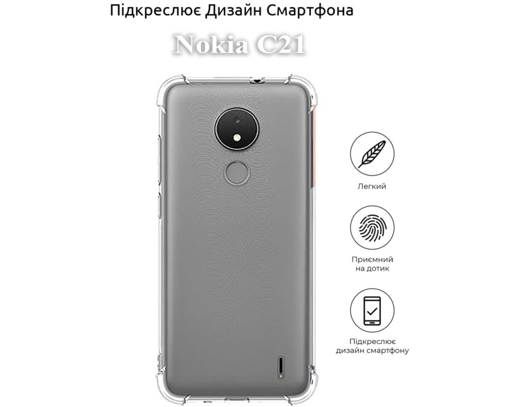 сумісність з моделями - Nokia C21, Тип чохла для телефону - накладка, Призначення - модельний, Колір - прозорий