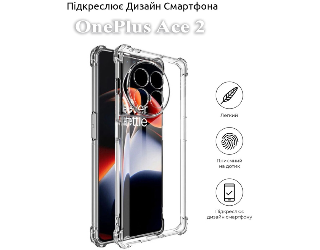 сумісність з моделями - OnePlus Ace 2, Тип чохла для телефону - накладка, Призначення - модельний, Колір - прозорий