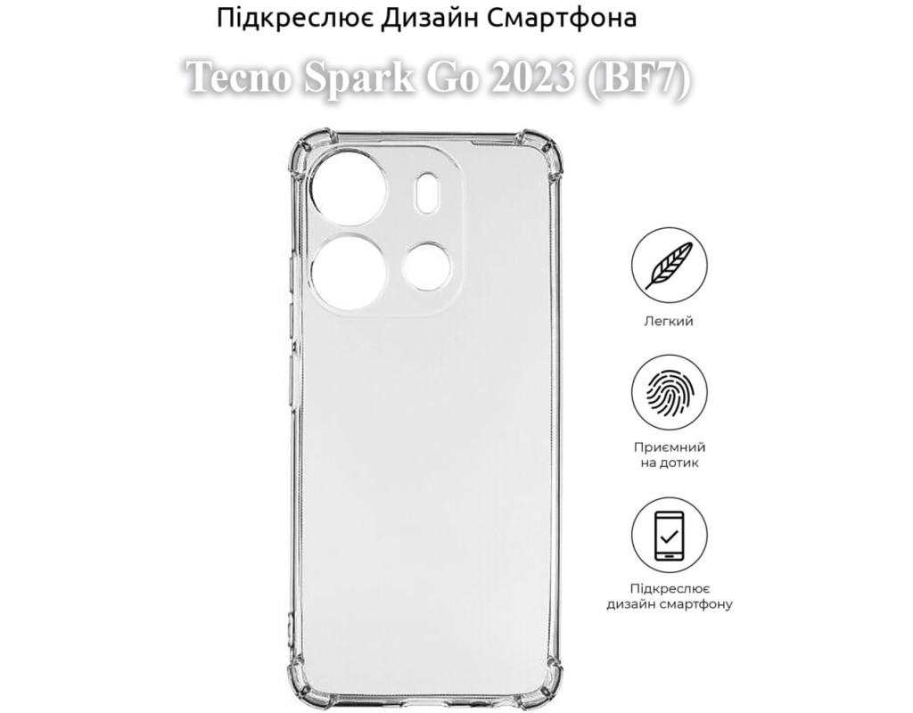 сумісність з моделями - Tecno Spark Go 2023, Тип чохла для телефону - накладка, Призначення - модельний, Колір - прозорий