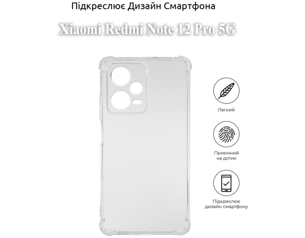 сумісність з моделями - Xiaomi Redmi Note 12 Pro, Тип чохла для телефону - накладка, Призначення - модельний, Колір - прозорий