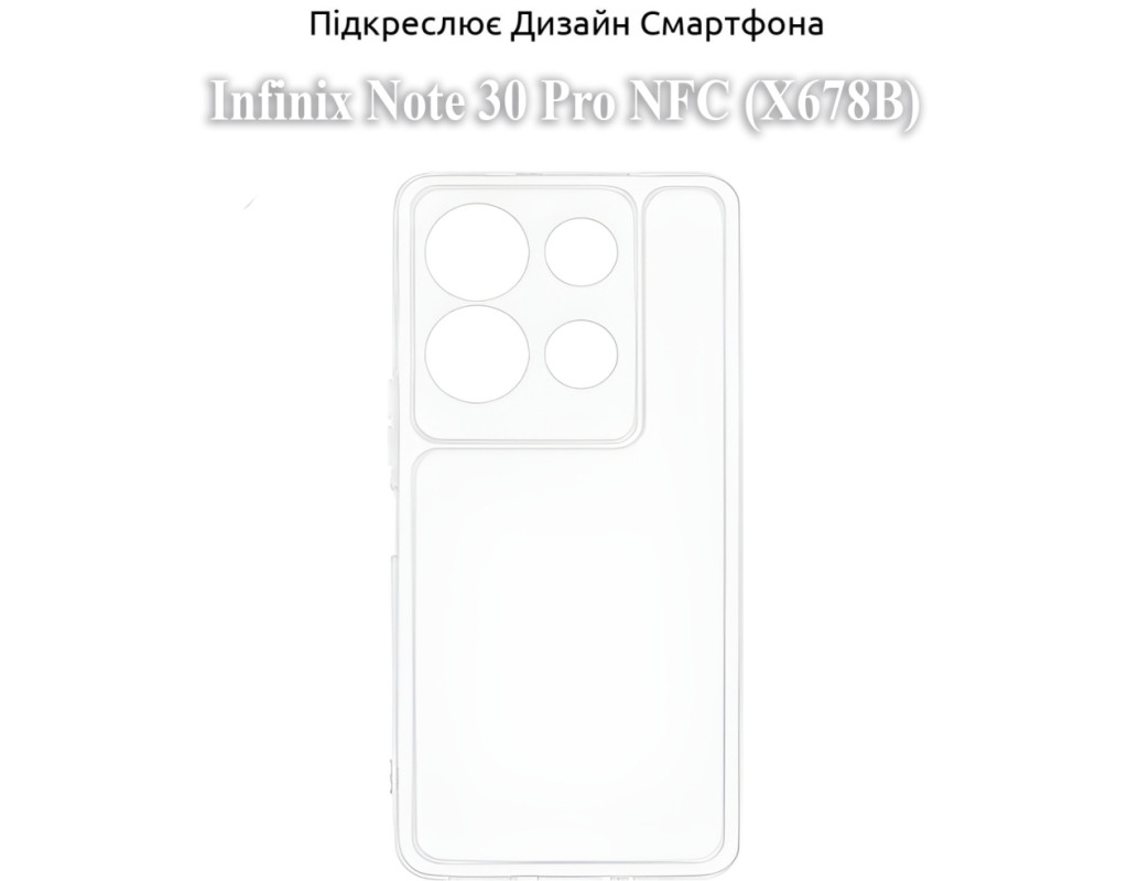 сумісність з моделями - Infinix Note 30 Pro NFC, Тип чохла для телефону - накладка, Призначення - модельний, Колір - прозорий