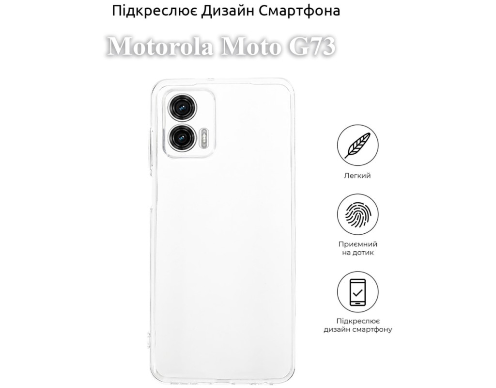 сумісність з моделями - Motorola G73, Тип чохла для телефону - накладка, Призначення - модельний, Колір - прозорий