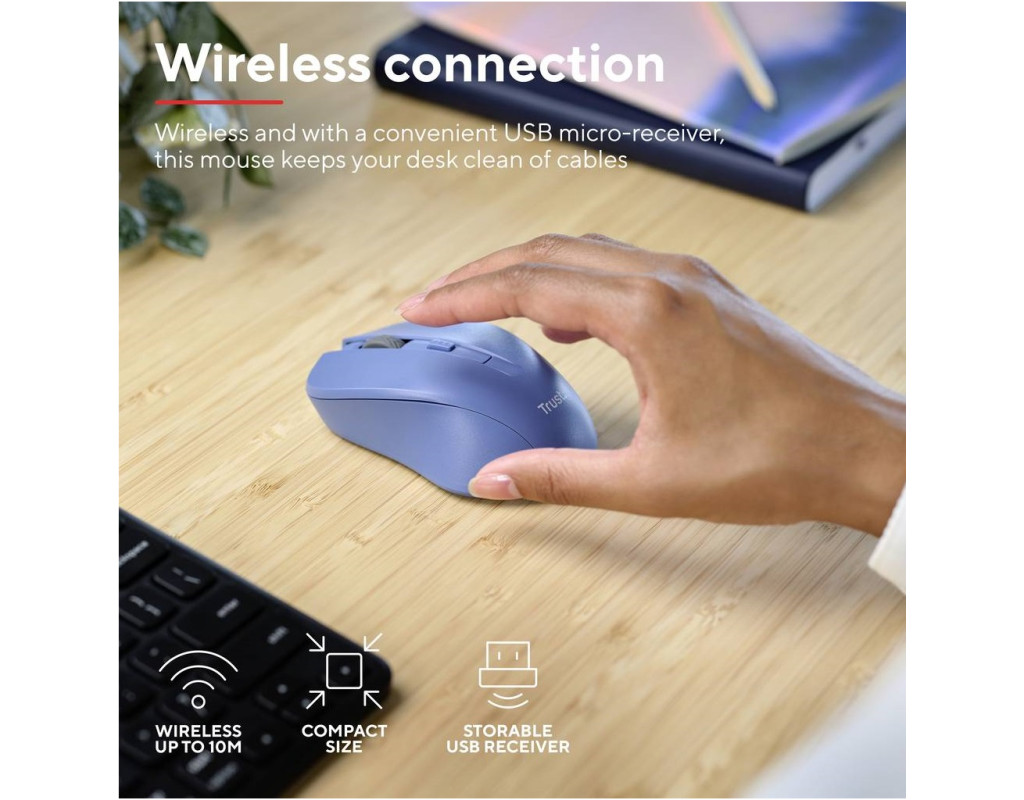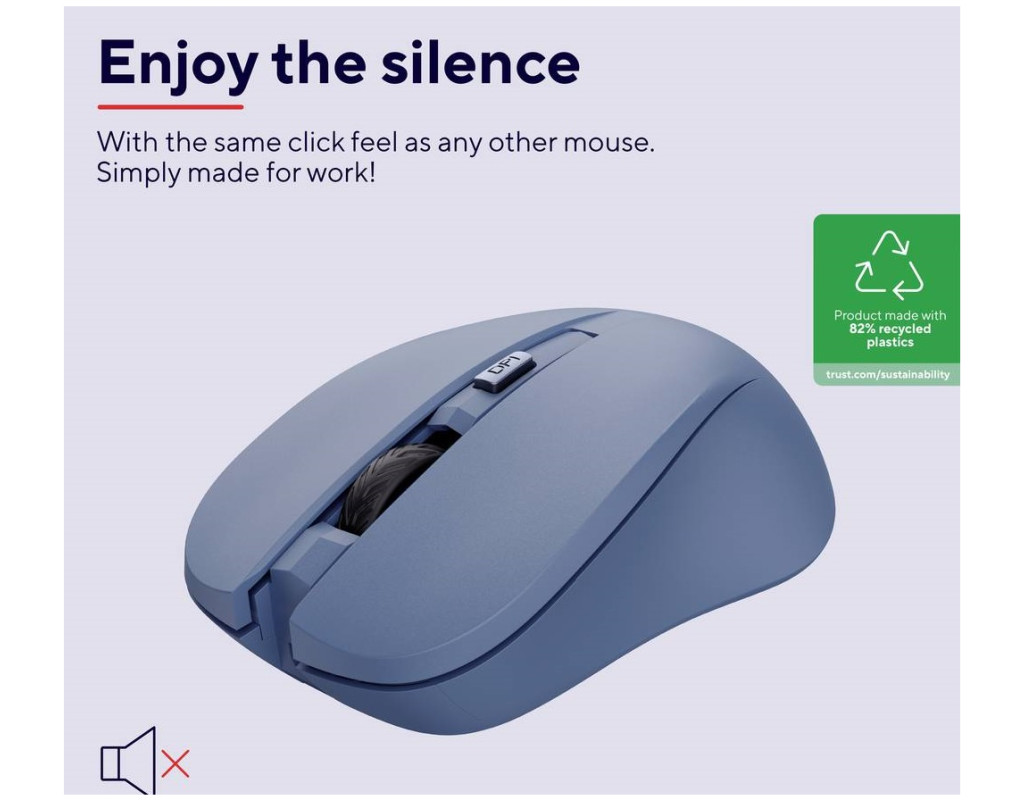 | Мишка Trust Mydo Silent Wireless Blue (25041) — це бездоганний вибір для тих, хто цінує якість і комфорт під час роботи або відпочинку за комп’ютером. Завдяки безшумним кнопкам, цей пристрій стане вашим ідеальним супутником у ситуаціях, де тиша є особливо важливою: незважаючи на стрімкий темп роботи, ви зможете насолодитися атмосферою спокою, не відволікаючи оточуючих. Це робить мишку особливо придатною для використання у спільних робочих просторах, університетських бібліотеках або в нічний час вдома, коли не хочеться турбувати сім’ю шумом. Мишка вирізняється не лише своєю безшумністю, а й портативністю. Компактні розміри (104 х 70 х 35 мм) і невелика вага у 84 г роблять пристрій легким у транспортуванні. Забирайте її із собою куди завгодно — в офіс, на лекцію або ж у подорож, знаючи, що вона займе мінімум місця в кишені чи сумці. Бездротове підключення на основі USB адаптера 2.4 ГГц забезпечує стабільну роботу на відстані до 10 метрів і дозволяє навіки забути про плутанину з кабелями. Особливий відсік для зберігання приймача USB допомагає зберегти порядок на вашому столі і завжди тримати важливе під рукою. Оптичний датчик цієї мишки має роздільну здатність до 1800 dpi, що гарантує максимальну точність та чутливість, особливо при роботі в програмному забезпеченні для графічного дизайну чи точних розрахунків. Можливість регулювання чутливості дозволяє налаштувати мишку відповідно до ваших особистих уподобань та задач, забезпечуючи оптимальні умови для різного роду діяльності. Виготовлена на 82% із переробленого пластику і постачається в упаковці, сертифікованій FSC, мишка Trust Mydo є прикладом екологічно відповідального вибору. Вибираючи її, ви підтримуєте умови збереження навколишнього середовища, водночас отримуючи високоякісний продукт. Пристрій живиться від однієї батареї AA, завдяки чому мишку можна використовувати протягом тривалого часу без частих замін елемента живлення. Стильний блакитний колір додасть витонченого акценту вашому робочому місцю, роблячи ваш простір більш особистим і привабливим. Trust Mydo Silent Wireless Blue поєднує у собі зручність, екологічність та інноваційні рішення, роблячи ваші робочі й ігрові процеси максимальними комфортними та продуктивними. Оберіть цю мишку, щоб ваш кожен день за комп'ютером був приємнішим і ефективнішим. |