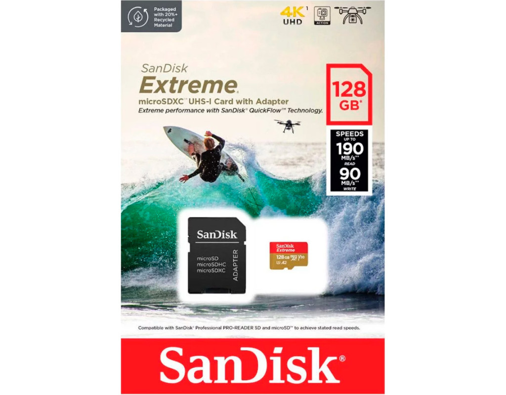 | Карта пам'яті SanDisk 128GB microSDXC із серії Extreme, спеціально розроблена для екшн-камер та дронів, забезпечує неймовірну надійність та швидкість, щоб зберегти ваші найкращі моменти у бездоганній якості. З об'ємом 128 ГБ, ця карта дозволяє зберігати велику кількість високоякісних фотографій та годин відео у форматі 4K. Однією з головних переваг цієї карти є її відзначена високою швидкістю передачі даних UHS-I (U3). Швидкість читання до 190 МБ/с та швидкість запису до 110 МБ/с гарантують безперебійний запис навіть у найекстремальніших умовах. З такою швидкістю, ви не пропустите жодного важливого кадру. Карта постачається з перехідником на SD, що полегшує передачу даних на інші пристрої, такі як ноутбуки та фотокамери. Її ударостійкий дизайн та захист від температур, води та рентгенівського випромінювання забезпечують безпечне зберігання ваших файлів незалежно від обставин. Ідеальний вибір для професіоналів і любителів активного відпочинку, SanDisk Extreme гарантує якість, на яку ви можете повністю покластися. Обирайте надійність та потужність з SanDisk і зафіксуйте кожен момент у найвищій якості. |