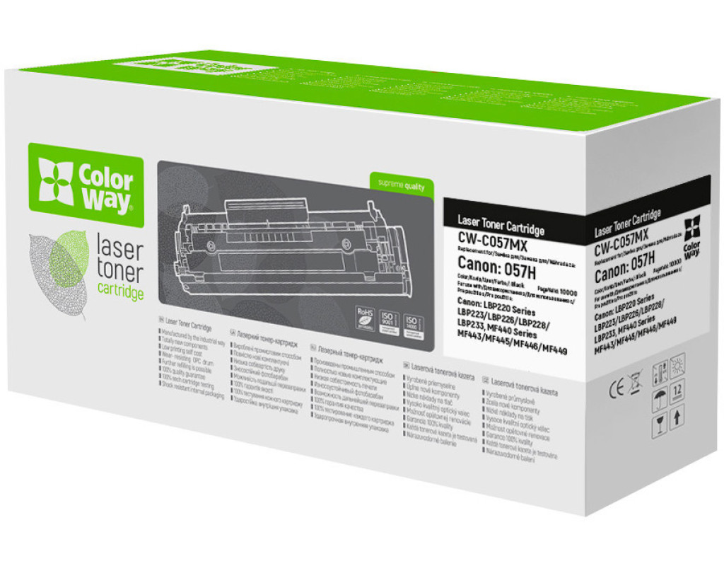 Тонерні картриджі ColorWay підходять для всіх популярних моделей принтерів, копірів та МФУ. Картриджі ідеально підходять для використання як вдома, так і в офісі. У виробництві картриджів ColorWay використовуються лише нові комплектуючі та висококласний тонер, що дозволяє отримувати якісні відбитки при мінімальних витратах. Характеристики: