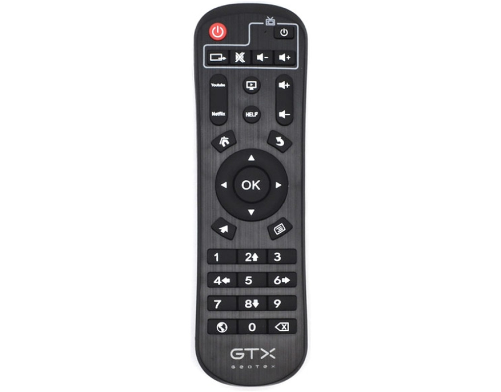 Пульт ДУ Geotex GTX-R10i це оригінальний програмований пульт дистанційного керування для роботи з приставкою смарт ТБ Geotex GTX-R10i.