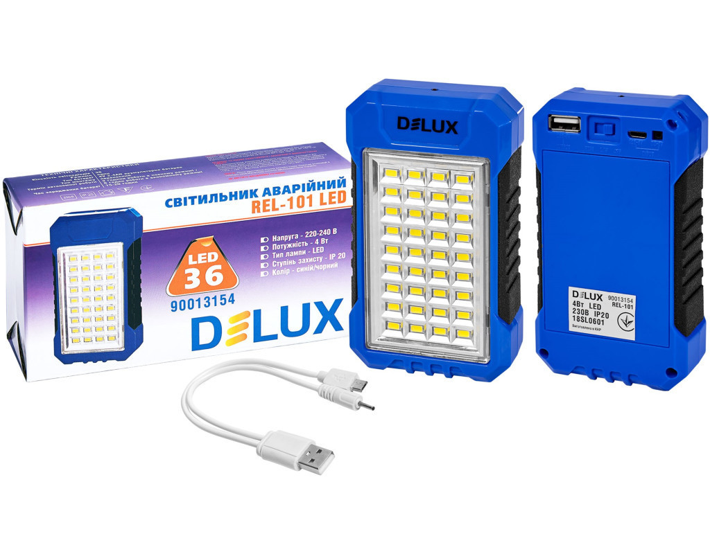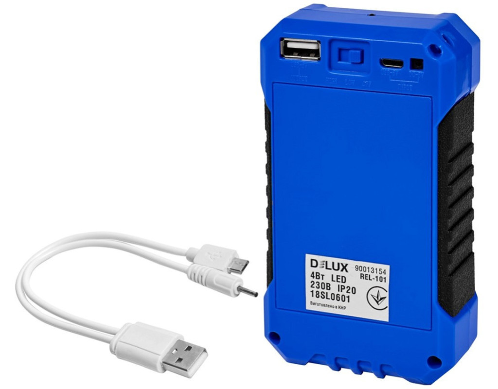 Аварійний світильник ТМ Delux REL-101 — це переносний LED-світильник з акумулятором, який може використовуватись для освітлення приміщень під час відсутності електроенергії. Компактний розмір світильника дає можливість носити його з собою та використовувати як ліхтар. Завдяки USB виходу 5V/1A на корпусі світильника також можна підзарядити мобільні пристрої. Світильник укомплектований кабелем живлення USB – microUSB+DC. Зарядний пристрій не входить до комплекту. |