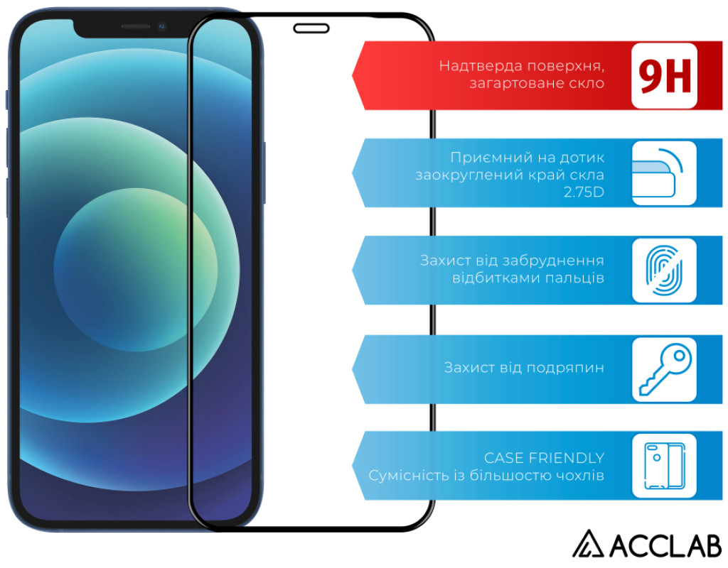 Скло захисне ACCLAB Full Glue ESD Apple Iphone 12/12 Pro (1283126532153)