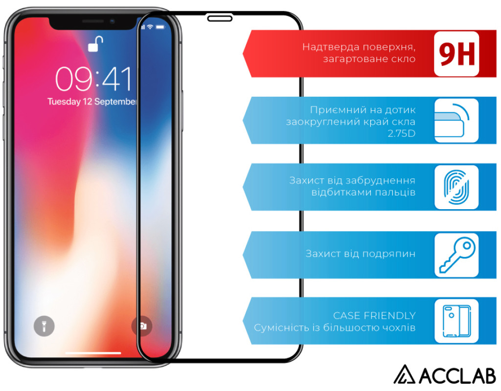 Скло захисне ACCLAB Full Glue ESD Apple Iphone X/XS/11 Pro (1283126532139)