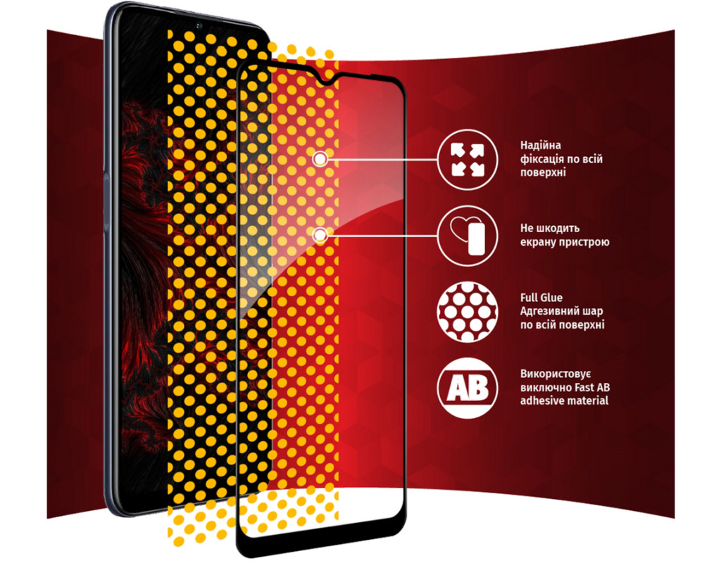 • Клейовий шар нанесений на всьому склі. Завдяки цьому, забезпечує надійну та сильну фіксацію всього скла, а не лише його країв. У разі потреби таке скло можна легко зняти без ризику пошкодити екран або його покриття.