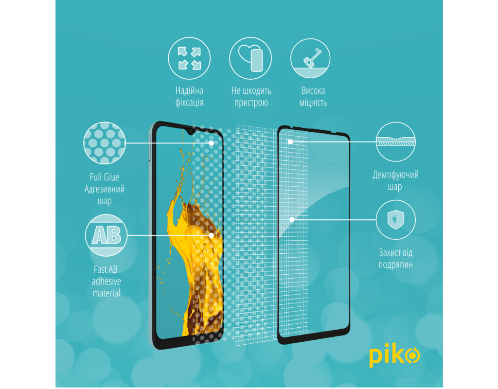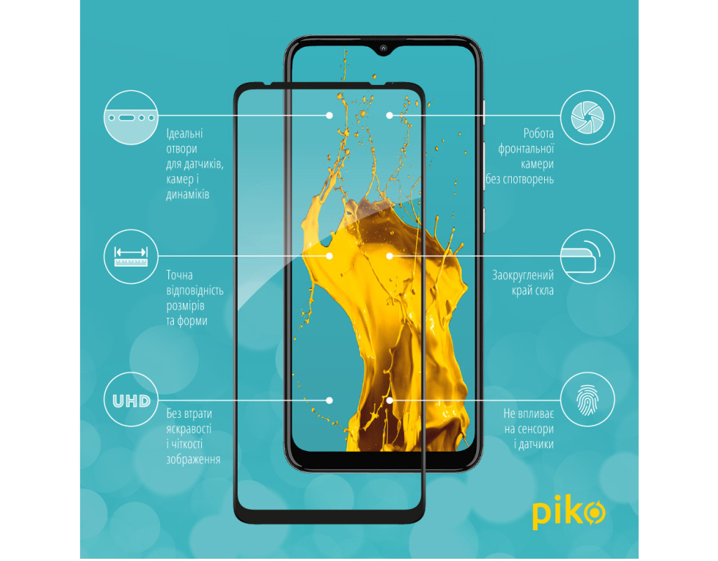 - Рівень міцності: 9H. Мінімізує ризик пошкодження передньої панелі мобільного пристрою під час повсякденного використання.