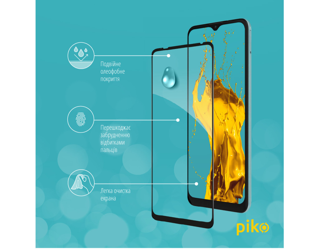 - Олеофобне покриття. Має водовідштовхувальні, жиростійкі й антикорозійні властивості. Зменшує видимість відбитків пальців і дає змогу легко чистити екран.