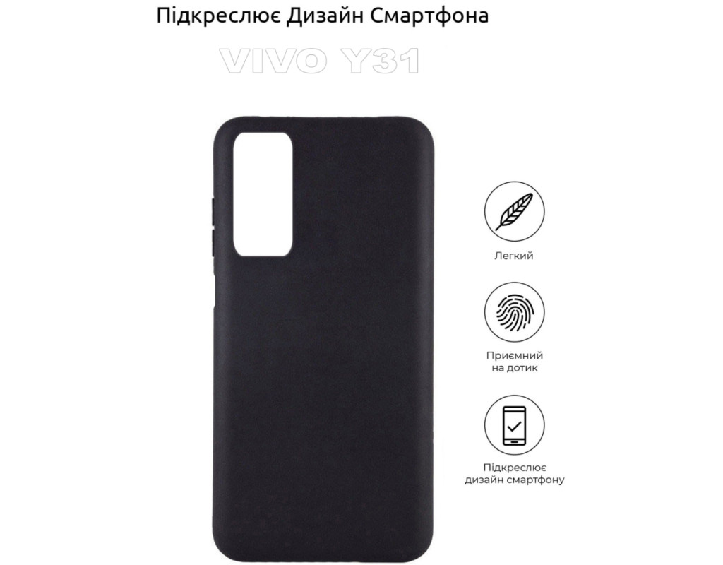 сумісність з моделями - Vivo Y31, Тип чохла для телефону - накладка, Призначення - модельний, Матеріал - силікон, Колір - чорний