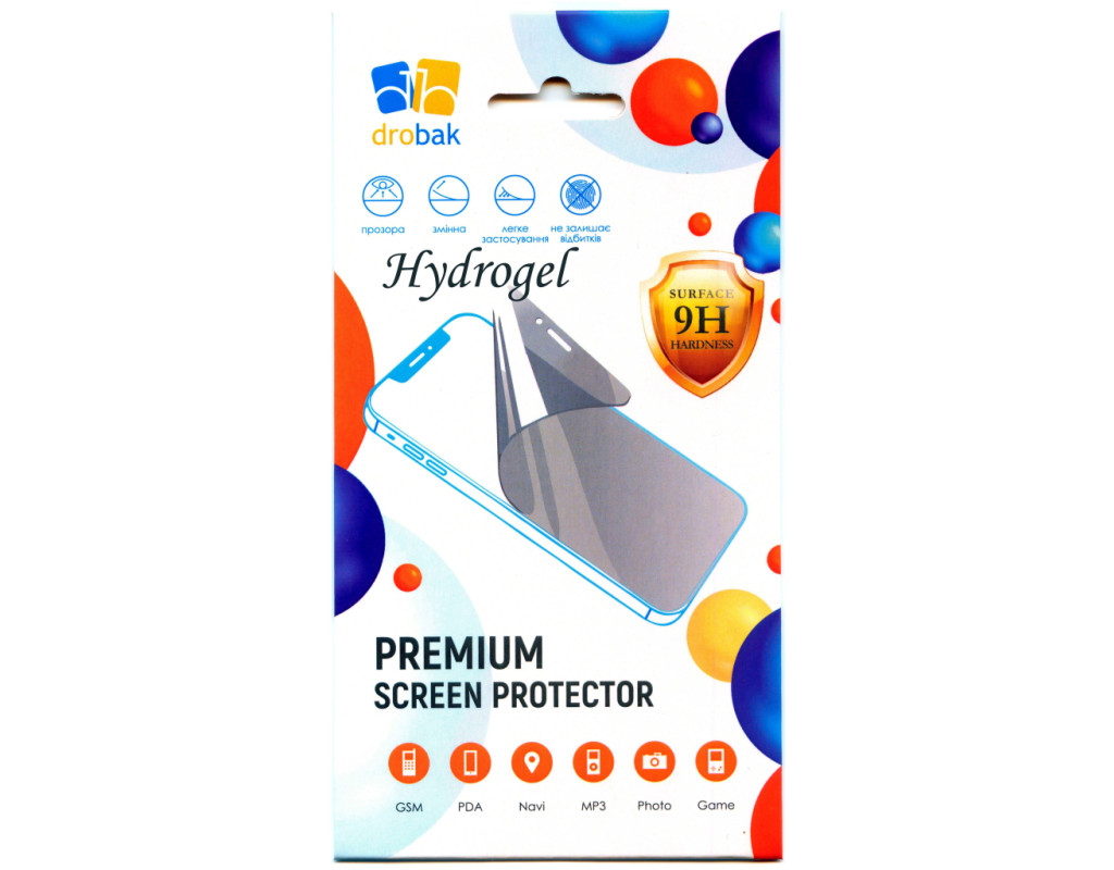 Гідрогелева плівка Drobak Hydrogel створена з полімерного матеріалу, що поглинає та утримує вологу. Гідрогелева плівка Drobak має високу міцність, здатна захистити екран смартфона від появи подряпин і потертостей. Переваги плівки Drobak Hydrogel: