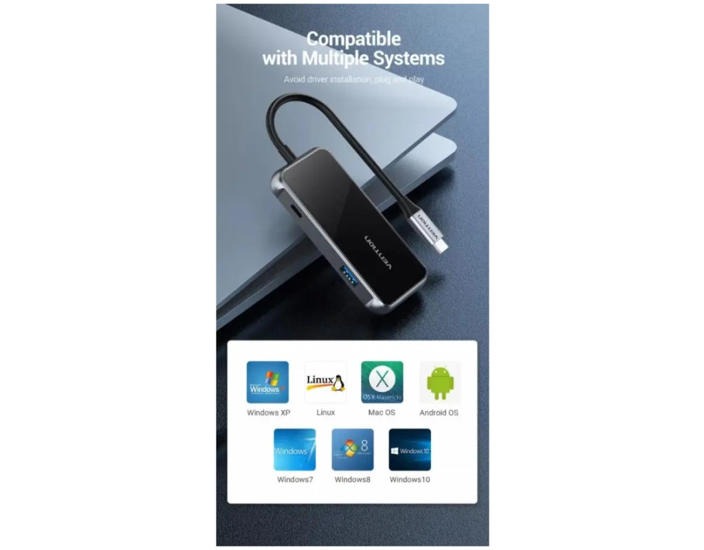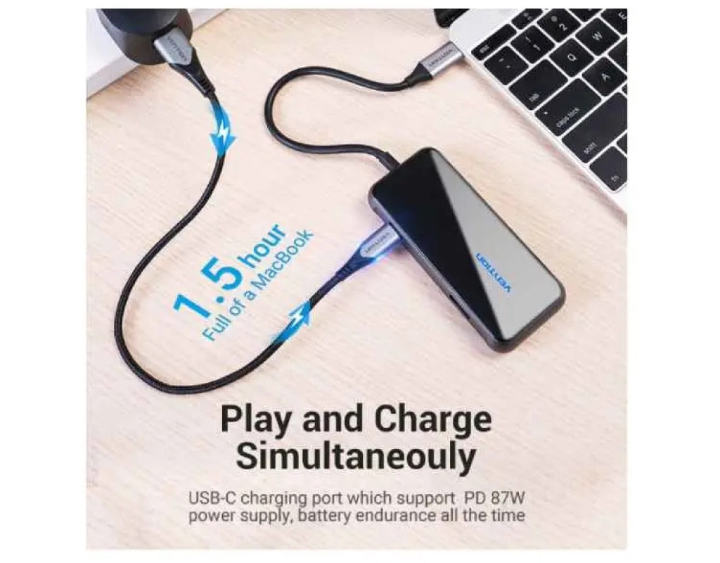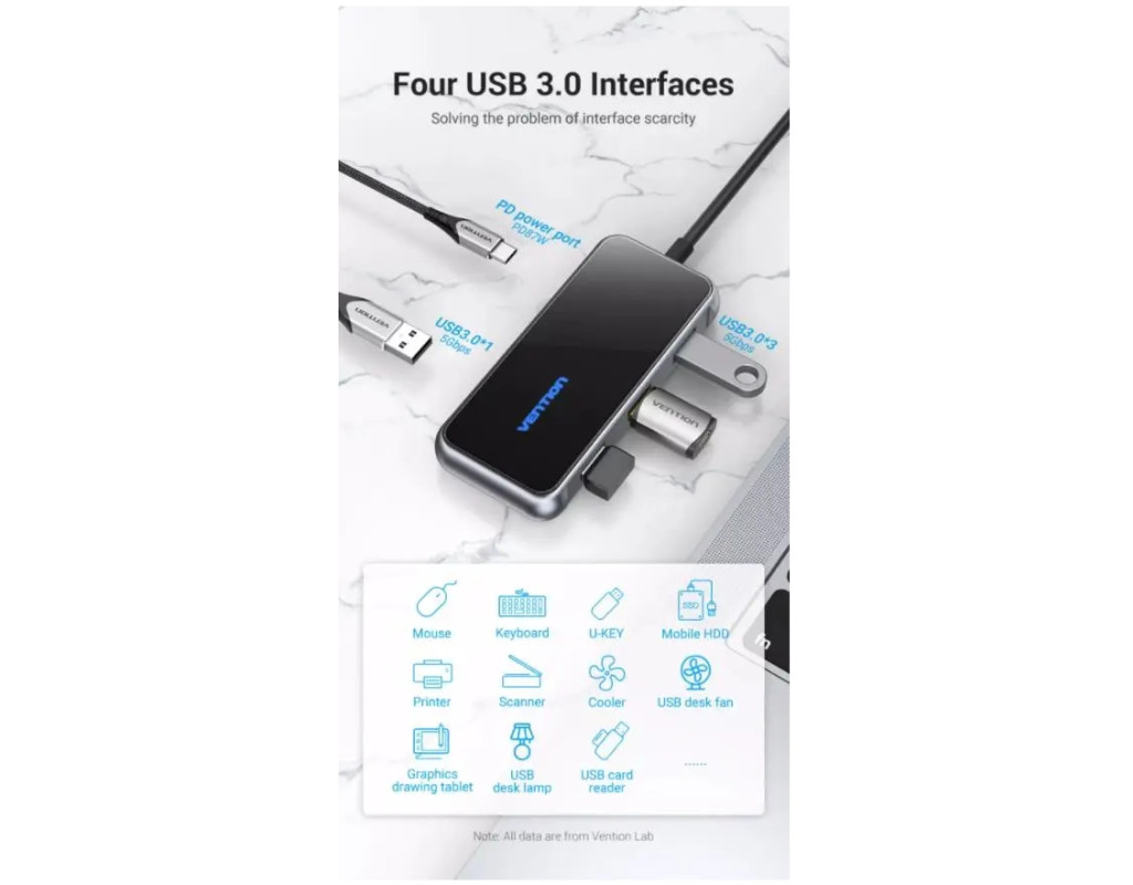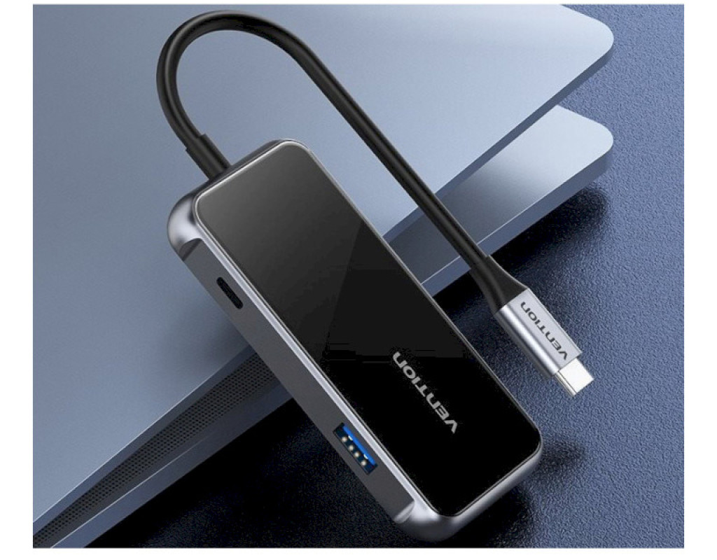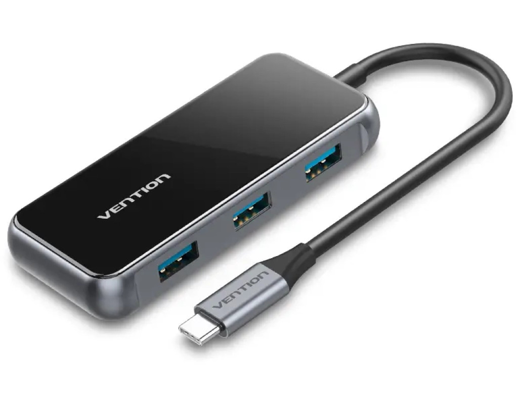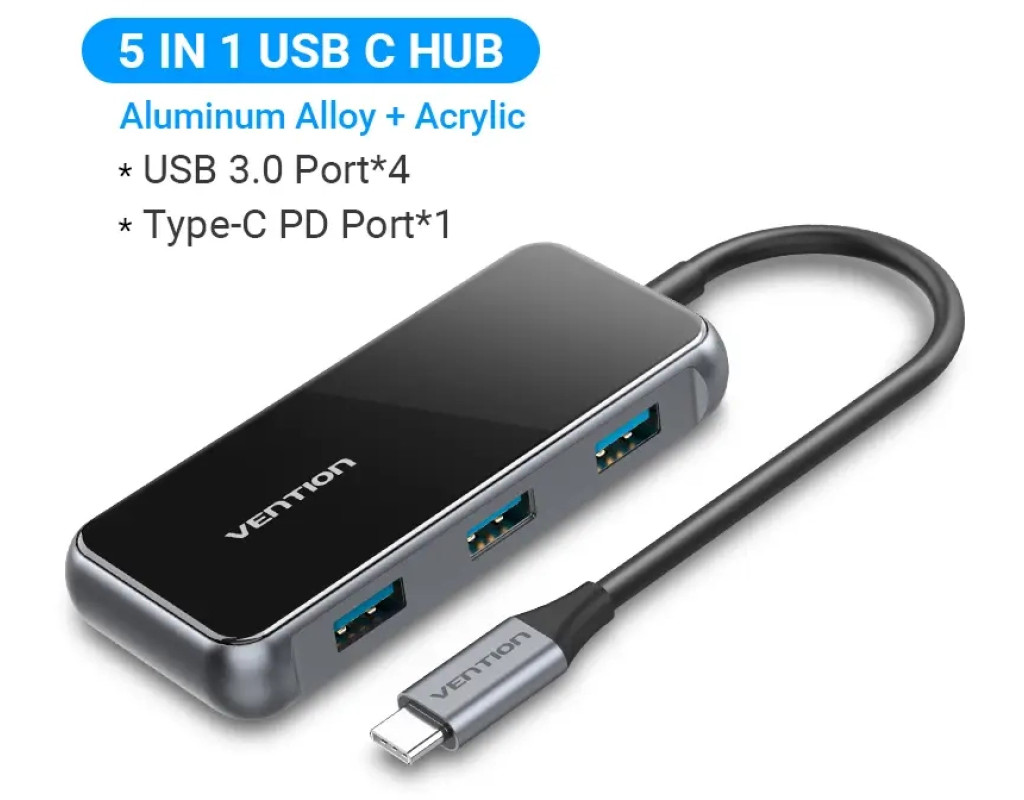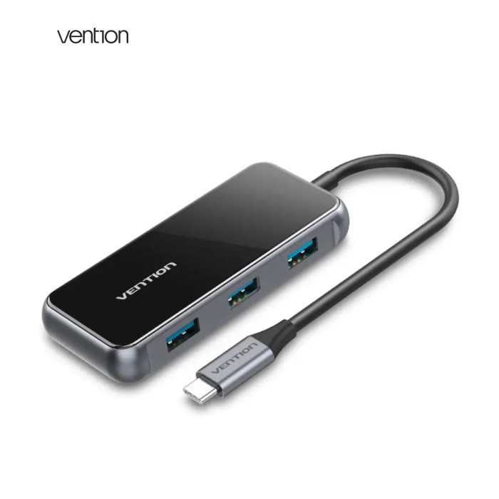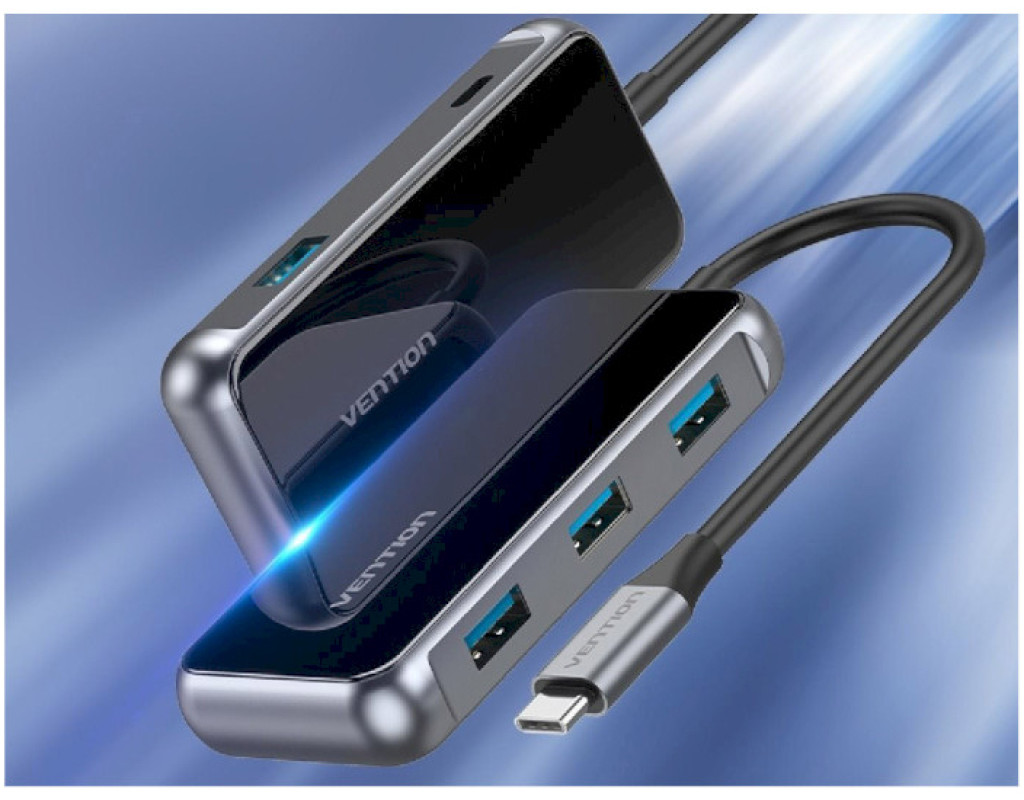 Концентратор VENTION USB 3.1 Type-C to 4хUSB 3.0/PD 87W 5-in-1 Gray Mirrored Surface (TFDHB)