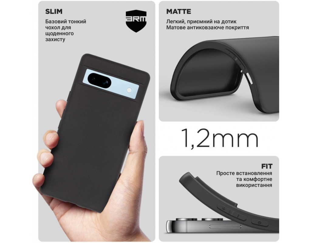 сумісність з моделями - Google Pixel 7a, Тип чохла для телефону - накладка, Призначення - модельний, Колір - чорний