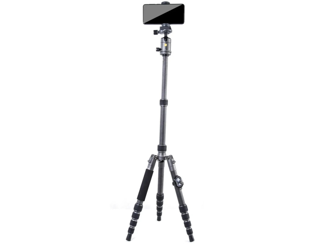 VEO 3GO 235CB - це суперкомпактний і дуже легкий п'ятисекційний карбоновий дорожній штатив з кульової голівкою, оптимізований для установки камер і підзорних труб вагою до 4 кг. При вазі штатива 1 кг і довжині в складеному вигляді 33 см, його можна легко взяти з собою в будь-яку поїздку, куди б Ви не направлялись. Але нехай розмір штатива не вводить в оману. Незважаючи на портативність, цей багатофункціональний штатив є універсальним рішенням для будь-якого фотографа або любителя спостережень за природою або спортсмена-стрілка. Окрім стандартних знімків, цей дорожній штатив дозволяє знімати під малим кутом або проводити макрозйомку, перевернувши двосекційну колону, або встановивши адаптер для мінімальної висоти зйомки, який входить в комплект. Штатив має три кути нахилу ніжок (21 °, 50 ° і 80 °) зі змінними гумовими і сталевими наконечниками для стабільної установки на будь-якому рельєфі. При вітряній погоді стійкість можна підвищити, закріпивши баласт на гаку центральної колони. Якщо у вас немає необхідності в цілому штативі, одну з ніжок можна зняти за секунди і прикріпити до центральної колони, щоб створити монопод, палицю для відеоблогу або палицю для cелфі. Замки Quick-twist Lock швидко фіксуються і дозволяють розгорнути штатив за секунди. Крім того, ці замки-фіксатори телескопічних секцій були розроблені таким чином, щоб їх було легко розбирати, чистити і збирати, що дозволяє встановлювати штатив, наприклад, на пляжі, з упевненістю, що Ви легко зможете почистити замки від піску, коли повернетеся додому. Кульова головка T-50, сумісна зі стандартом кріплення Arca Swiss, дозволяє використовувати будь-яку швидкознімну штативну платформа, сумісну з Arca Swiss. Головка має ергономічні алюмінієві фіксуючі ручки, які дозволяють легко фіксувати голівку навіть в холодних і вологих умовах, коли необхідні рукавички. Якщо Ви хочете максимально використовувати можливості камери свого смартфона, цей штатив має адаптер для підключення будь-якого смартфона шириною до 87 мм. Для максимальної стабільності і використання монопода як селфі-палки, в комплекті є також дистанційний спусковий механізм для IOS і Android з інтерфейсом Bluetooth, тому немає необхідності торкатись телефона під час зйомки. Штатив разом з аксесуарами легко вкладається в комплектний захисний чохол. |