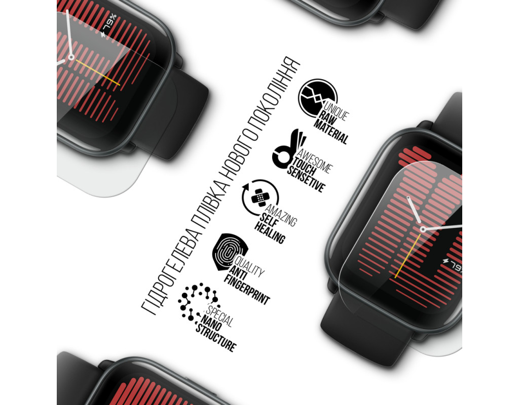 Призначення - для смарт годинника, Вид покриття - захисний, гідрогелева, Сумісність з моделями - Amazfit Active, Кількість в упаковці - 6 шт