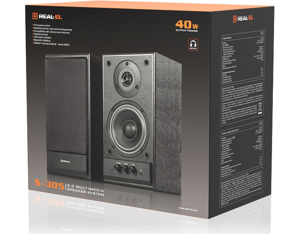 | Акустична система REAL-EL S-305 Black (EL121200012) — це ваш ідеальний компаньйон у світі високоякісного звуку, для якого кожен трек перетворюється на справжню аудіопригоду. З параметрами, розробленими для тих, хто цінує яскравість і деталізацію звуку, ця система гарантує, що кожен акорд звучатиме чисто та виразно. Ця полична акустична система має дротове підключення, що забезпечує надійний сигнал без втрат якості. Завдяки 2.0 каналам і двосмуговому відтворенню, ви отримаєте максимальне задоволення від звучання, яке наповнює простір яскравими звуковими хвилями. Вихідна потужність у 40 Вт дозволяє розкрити всю глибину низьких частот, підкреслюючи найтонші нюанси музичного полотна без спотворення. Дворівневе підсилення звуку є ще однією перевагою REAL-EL S-305. Ручки регулювання, розташовані на передній панелі, дозволяють легко налаштувати загальну гучність, а також скоригувати високі і низькі частоти, підлаштовуючи звучання під ваші особисті вподобання. Це робить систему ідеальним рішенням для тих, хто прагне відчути кожен секундний відгук і перехід. Компактний і сучасний дизайн елегантно поєднується з різними стилями інтер'єру, від модерну до класики. Виготовлений з деревини (MDF), корпус не лише забезпечує акустичні властивості на найвищому рівні, але й додає вишуканості вашій домашній обстановці. Матеріали преміум-класу гарантують, що ця система витримає випробування часом без втрати якості. Не важливо, яке джерело звуку ви віддаєте перевагу, з REAL-EL S-305 підключення стане максимально простим та зручним завдяки наявності mini Jack 3.5 mm і AUX роз'ємів. Це дозволяє легко інтегрувати систему з різними пристроями — від сучасних гаджетів до настільних комп'ютерів, перетворюючи будь-який простір на концертний зал. Вага системи становить 4.2 кг, що робить її стабільною і надійною у використанні. Підключення до мережі забезпечує стабільне живлення, завдяки чому ви завжди можете насолоджуватись музикою без перерв. REAL-EL S-305 — це вибір для тих, хто не просто слухає музику, а живе нею, насолоджуючись кожною нотою на максимальній гучності і якості. |