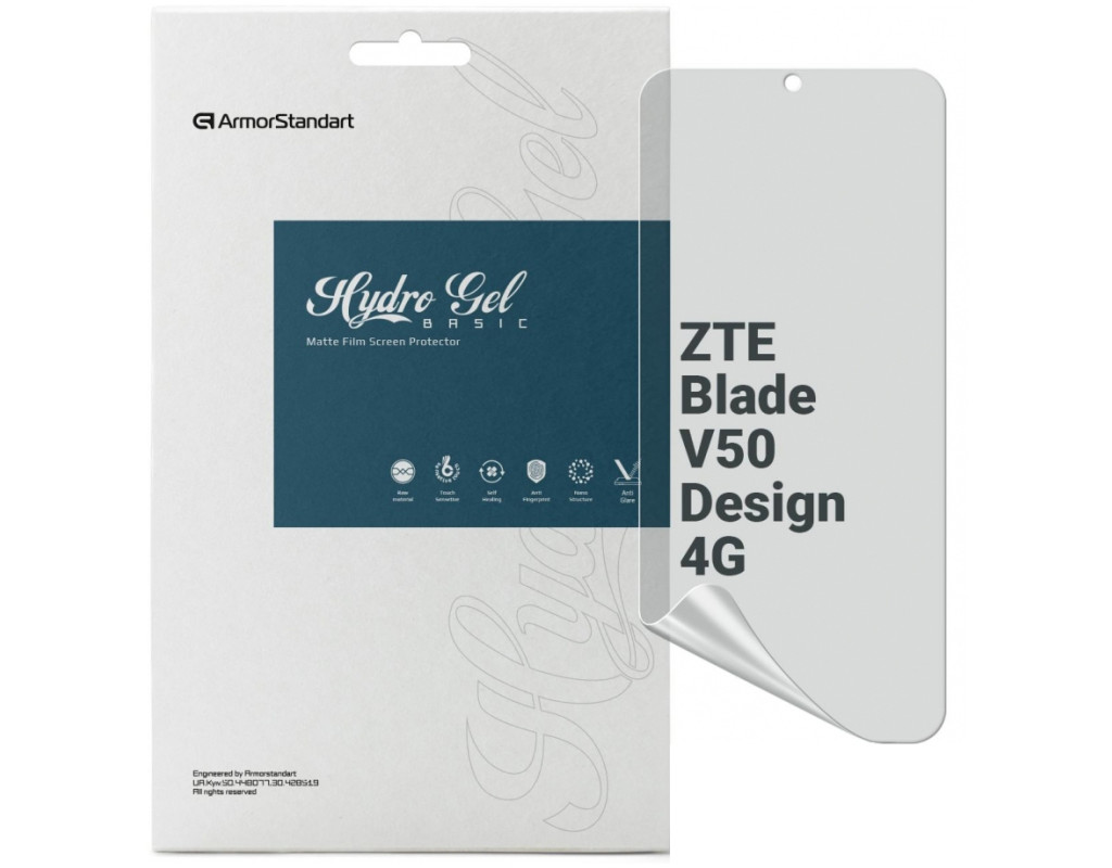 Призначення - для телефону, Вид покриття - матове, захисний, гідрогелева, Сумісність з моделями - ZTE Blade V50 Design, Кількість в упаковці - 1 шт