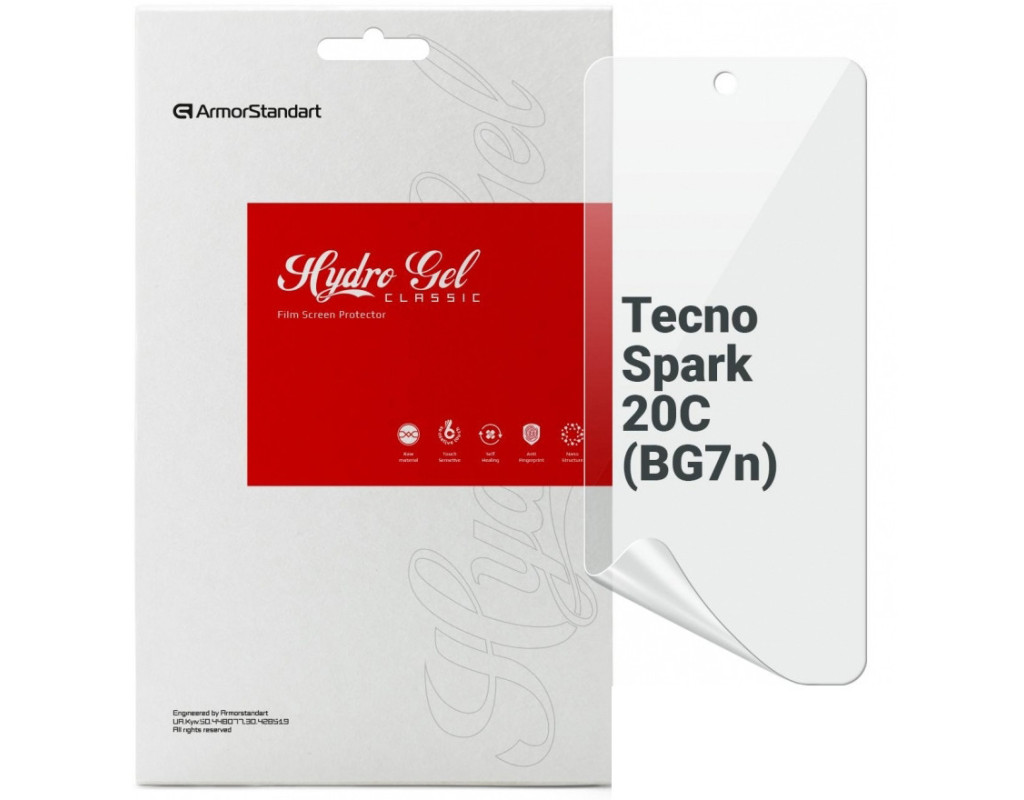 Призначення - для телефону, Вид покриття - захисний, гідрогелева, Сумісність з моделями - Tecno Spark 20C, Кількість в упаковці - 1 шт