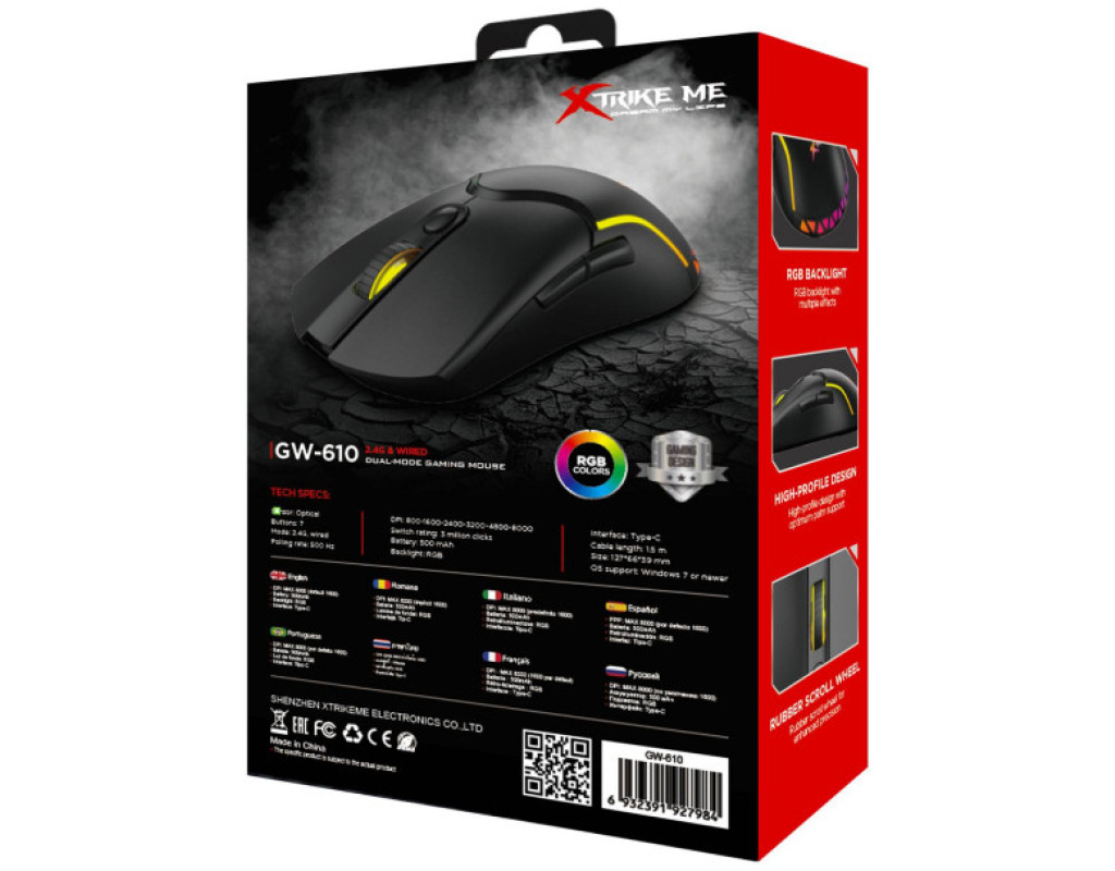 | Мишка Xtrike ME GW-610 Wireless RGB Black (GW-610) – це передова геймерська мишка, розроблена для тих, хто цінує максимально ефективний контроль та важливість кожного кліку у віртуальних та реальних баталіях. Її ергономічний дизайн забезпечує зручність і комфорт навіть під час тривалих ігрових сесій. Завдяки оптичному сенсору, мишка гарантує високу точність і миттєву реакцію на рухи, що є критично важливим у напружених моментах гри. Однією з ключових особливостей Xtrike ME GW-610 є можливість налаштування роздільної здатності від 800 до 8000 DPI. Це дозволяє індивідуально підлаштовувати швидкість та чутливість під різні типи ігор або завдань, забезпечуючи ідеальну комбінацію для шутерів, стратегій або для роботи з графічними додатками. Завдяки безпровідному підключенню на частоті 2.4 ГГц, мишка пропонує стабільний зв'язок без затримок, а можливість використовувати USB адаптер дозволяє легко здійснювати інтеграцію з будь-яким комп'ютером. Кількість кнопок — сім, і вони розташовані так, щоб їх використання було максимально зручним і інтуїтивно зрозумілим. Вбудована RGB підсвітка з можливістю персоналізації додає стилю та підкреслює ігровий характер обладнання. Ви можете легко змінювати кольори й ефекти, щоб мишка гармонійно поєднувалася з вашою ігровою системою та настроєм. Живлення забезпечується від акумулятора, що гарантує довговічність використання без потреби в частій заміні батарейок. Компактні розміри 127 х 66 х 39 мм ідеально підходять для будь-якої руки, роблячи мишку Xtrike ME GW-610 чудовим вибором не лише для дому, але і для професійних геймерських турнірів. Ця мишка чудово відповідає вимогам сучасних геймерів, забезпечуючи оптимальні умови для гри в такі популярні ігри, як World of Tanks. Вона не лише виконує всі необхідні функції, але й надає унікальні переваги, які роблять її незамінним інструментом для перемог. З Xtrike ME GW-610 у ваших руках ви завжди будете впевнені у своїх рішеннях на полі бою і з комфортом керуватимете будь-якими завданнями, які вам випадають. |