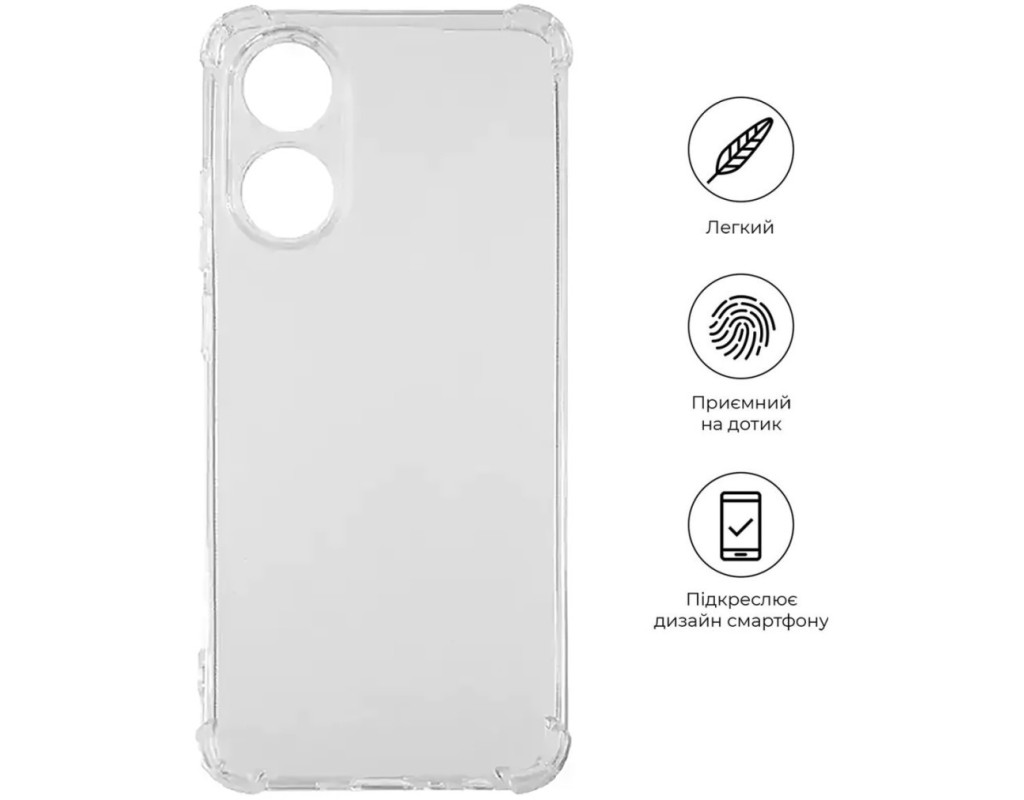 сумісність з моделями - Oppo A18, OPPO A38, Тип чохла для телефону - накладка, Призначення - модельний, Колір - прозорий