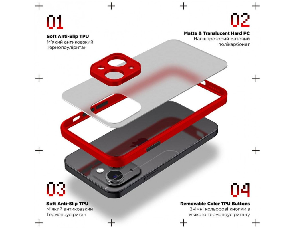 сумісність з моделями - Xiaomi Redmi Note 13 Pro 5G, Тип чохла для телефону - накладка, Призначення - модельний, Колір - червоний