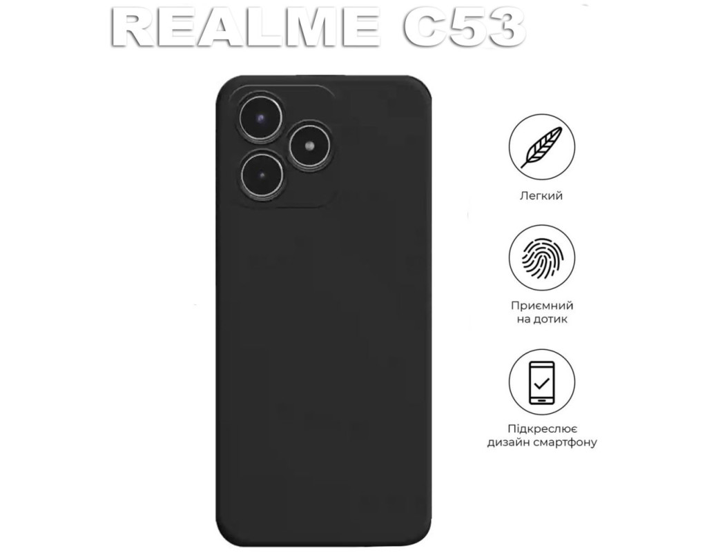сумісність з моделями - Realme C53, Тип чохла для телефону - накладка, Призначення - модельний, Матеріал - силікон, Колір - чорний