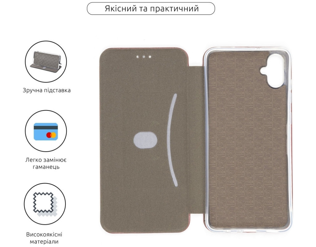 сумісність з моделями - Samsung Galaxy A05, Тип чохла для телефону - книжка, Призначення - модельний, Матеріал - штучна шкіра, Колір - марсала