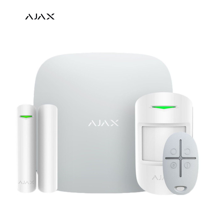 Ajax StarterKit 2 - стартовий комплект системи безпеки з підтримкою фотоверіфікаціі тривог. Комплект бездротової системи безпеки StarterKit 2 вбереже від пограбування. Ajax моментально повідомить вам і до охоронної компанії про злом. Ajax StarterKit 2 керується зі смартфона з будь-якої точки світу. Навіть якщо в будинку відключать електрику і інтернет, хаб продовжить захищати ваше майно. У комплект StarterKit 2 входять чотири пристрої: Hub 2 - Хаб контролює роботу пристроїв системи безпеки. А ви завжди знаєте, що відбувається в будинку завдяки пуш-повідомленнями, смс і дзвінків. MotionProtect - Датчик руху з перших кроків реагує на стороннього в приміщенні, що охороняється. DoorProtect - Датчик моментально реагує на відкриття. Це перша лінія оборони вашої системи безпеки, яку можна встановити на будь-який тип дверей. SpaceControl - Брелок для ключів ставить і знімає будинок з охорони. А одне натискання тривожної кнопки викличе підкріплення в екстреній ситуації. Система управляється дистанційно за допомогою мобільних додатків на iOS і Android. У кілька кліків можна налаштувати датчики, активувати часткову охорону і перевірити стан кожного пристрою. У додатку можна дивитися в реальному часі відеопотік з відеокамер, які підтримують протокол RTSP.Ajax легко підключається до пульту охорони. Запит на обслуговування можна відправити відразу з мобільного додатка - в списку є Поліція охорони України і більше 45 приватних охоронних компаній з усієї країни. Переваги Ajax StarterKit 2