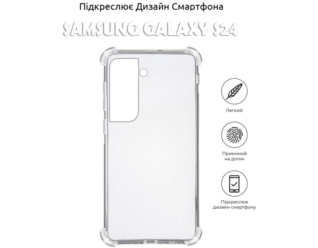 сумісність з моделями - Samsung Galaxy S24, Тип чохла для телефону - накладка, Призначення - модельний, Колір - прозорий