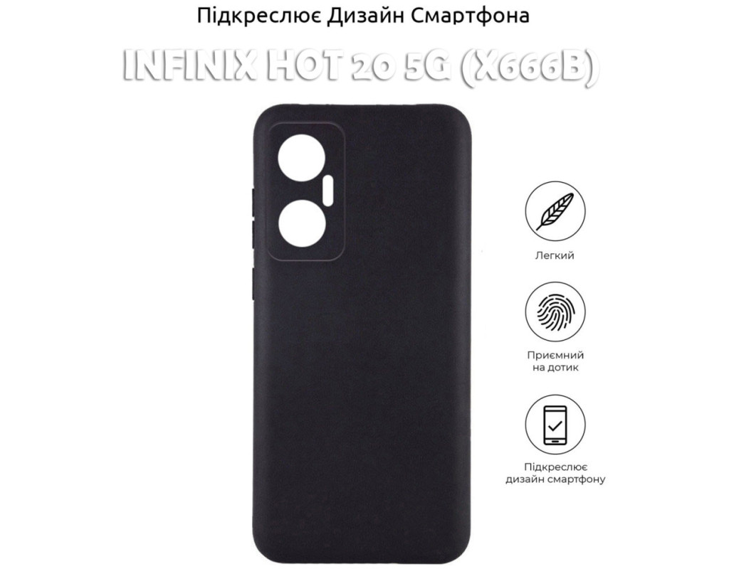 сумісність з моделями - Infinix Hot 20 5G, Тип чохла для телефону - накладка, Призначення - модельний, Матеріал - силікон, Колір - чорний