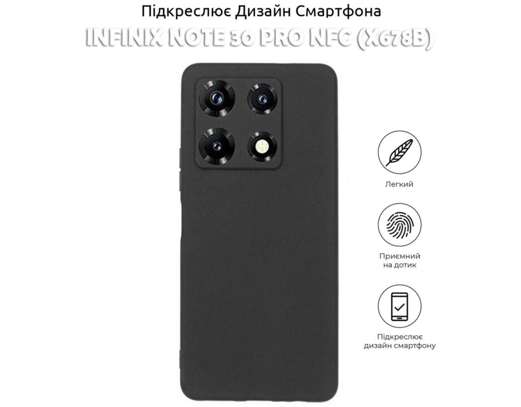сумісність з моделями - Infinix Note 30 Pro NFC, Тип чохла для телефону - накладка, Призначення - модельний, Колір - чорний