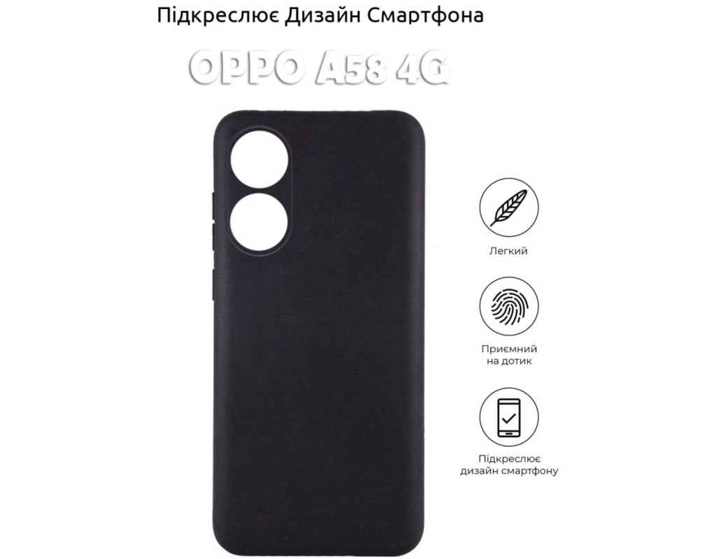 сумісність з моделями - OPPO A58, Тип чохла для телефону - накладка, Призначення - модельний, Матеріал - силікон, Колір - чорний