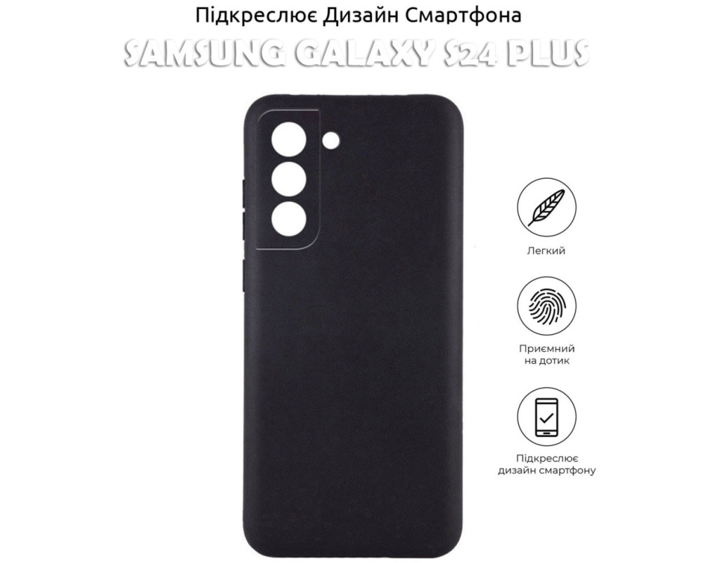 сумісність з моделями - Samsung Galaxy S24 Plus, Тип чохла для телефону - накладка, Призначення - модельний, Матеріал - поліуретан, Колір - чорний