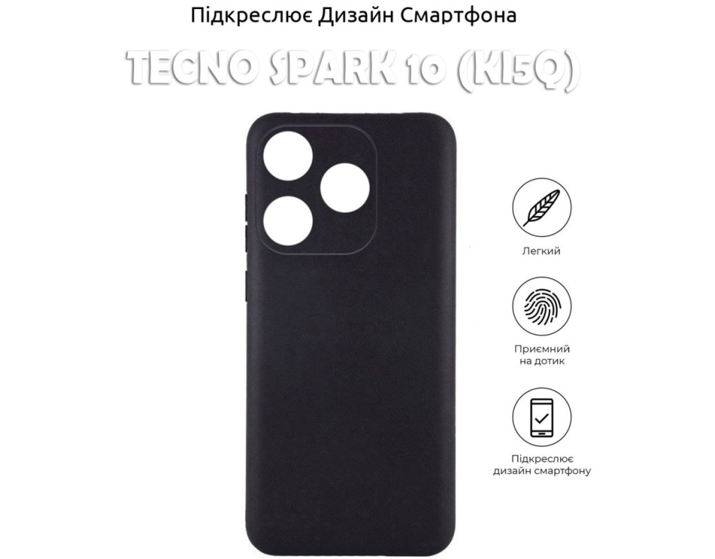 сумісність з моделями - Tecno Spark 10, Тип чохла для телефону - накладка, Призначення - модельний, Матеріал - силікон, Колір - чорний