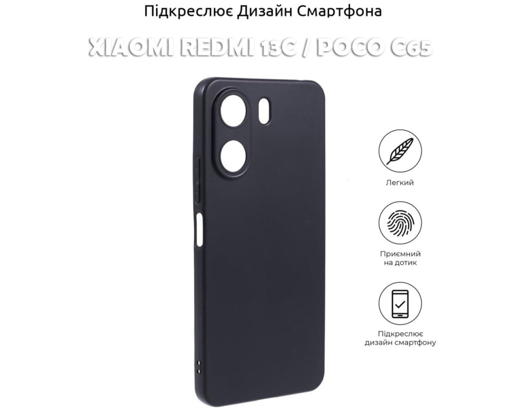 сумісність з моделями - Xiaomi Redmi 13C, Xiaomi Poco C65, Тип чохла для телефону - накладка, Призначення - модельний, Матеріал - силікон, Колір - чорний