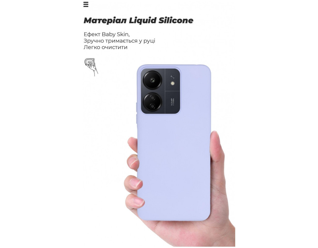 сумісність з моделями - Xiaomi Redmi 13C, Тип чохла для телефону - накладка, Призначення - модельний, Колір - лавандовий