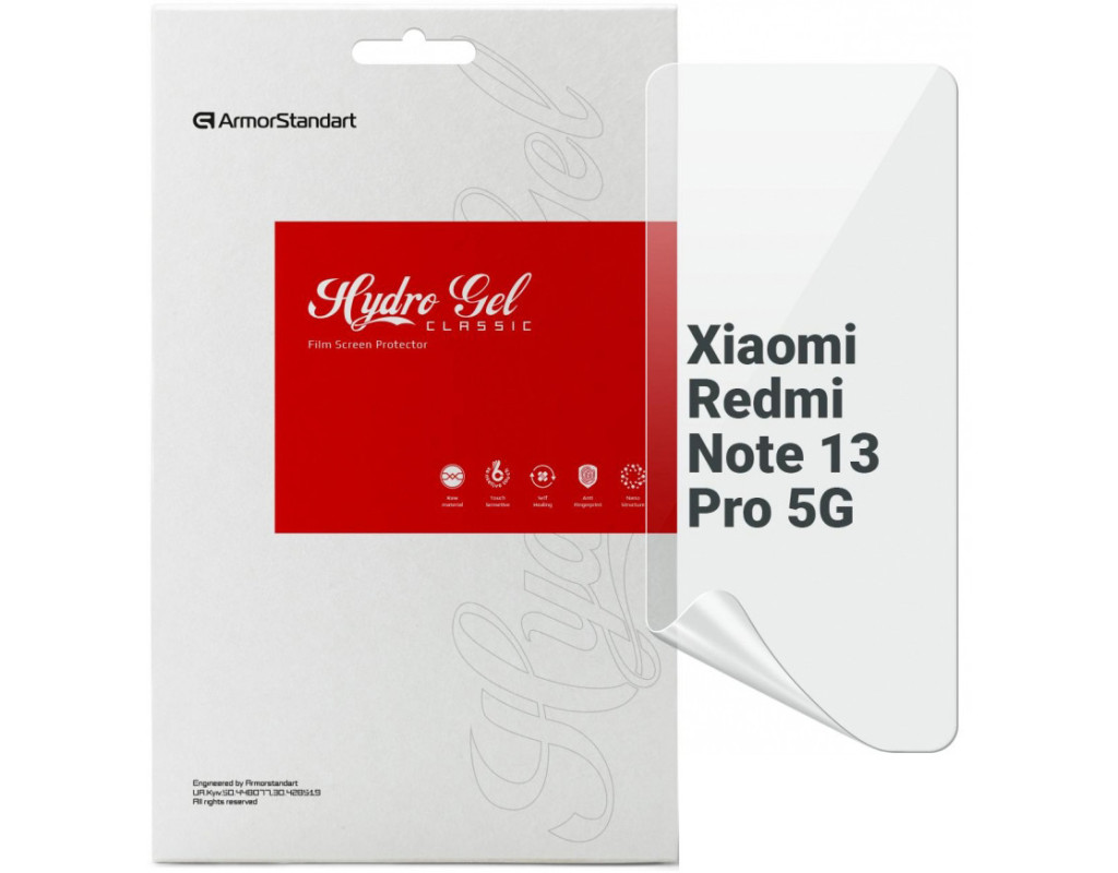 Призначення - для телефону, Вид покриття - захисний, гідрогелева, Сумісність з моделями - Xiaomi Redmi Note 13 Pro 5G, Кількість в упаковці - 1 шт