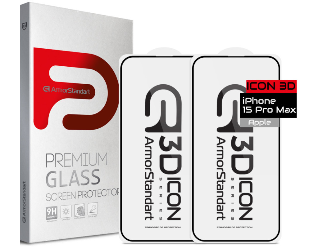 Скло захисне Armorstandart Icon 3D iPhone 15 Pro Max Black 2pcs (ARM74271)