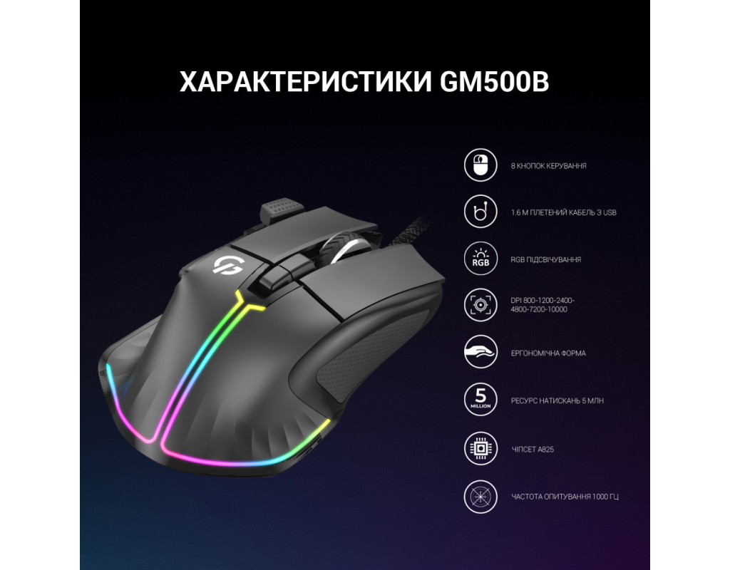 | Мишка GamePro GM500B RGB USB Black (GM500B) – це ідеальний вибір для геймерів, які прагнуть досягти нових вершин у світі віртуальних баталій. Її розроблено з урахуванням всіх потреб сучасних гравців, поєднавши в собі якість, продуктивність та стиль. Цей пристрій створено з першокласних матеріалів, забезпечуючи надійність та довготривалу експлуатацію. Чорний колір додає миші елегантності та універсальності, гармонійно поєднуючися з будь-яким ігровим обладнанням. З дротовим підключенням типу USB миша забезпечує стабільну і швидку передачу даних, що є критично важливим для геймерів під час інтенсивних ігрових сесій, особливо в таких іграх, як World of Tanks. Однією з ключових переваг GamePro GM500B є її оптичний датчик з роздільною здатністю до 10000 dpi. Це дозволяє точно відстежувати рухи навіть під час найдинамічніших ігрових моментів, забезпечуючи блискавичну реакцію та точність в керуванні. Завдяки чіпу A825, миша надає стабільну продуктивність в будь-якій ігровій ситуації. 8 програмованих кнопок дозволяють налаштовувати макроси та команди на ваш розсуд, надаючи перевагу в іграх та розширюючи ваші тактичні можливості. Ви без сумнівів оціните довговічність цих клавіш, які можуть витримати до 5 000 000 натискань, що робить їх ідеальним вибором для інтенсивного використання. GamePro GM500B також оснащена регульованим RGB підсвічуванням, яке можна налаштувати за допомогою спеціального програмного забезпечення. Це дозволяє персоналізувати вигляд миші, обираючи кольори та ефекти, які підходять саме вам та створюють унікальну атмосферу під час гри. Завдяки ергономічному дизайну розміром 123 х 83 х 43 мм, миша комфортно лежить у долоні, а довжина кабеля 1.6 м забезпечує достатню свободу руху. Це гарантує максимальну зручність під час тривалих ігрових марафонів, дозволяючи повністю зануритися у процес без дискомфорту. GamePro GM500B RGB USB Black – це не просто миша, це ваш вірний товариш у подорожах по світу ігор, створений для найвибагливіших користувачів, які цінують високу якість та унікальні функції. Оберіть GamePro, щоб щоразу перемагати з натхненням та впевненістю в кожному кліці. |