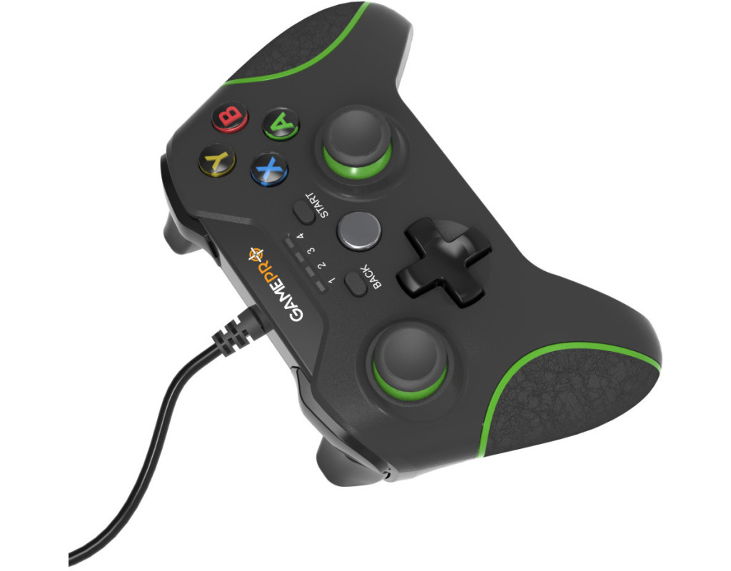 Геймпад - джойстик GamePro MG450B чорно-зелений.Модель з чорного матового пластику, має 10 цифрових кнопок, 2 стіки.Дротове з'єднання. Довжина кабелю 1.8 метрів.Cумісність зі смартфонами та планшетами під управлінням Android лише із використанням OTG-кабелю (не входить до комплекту).