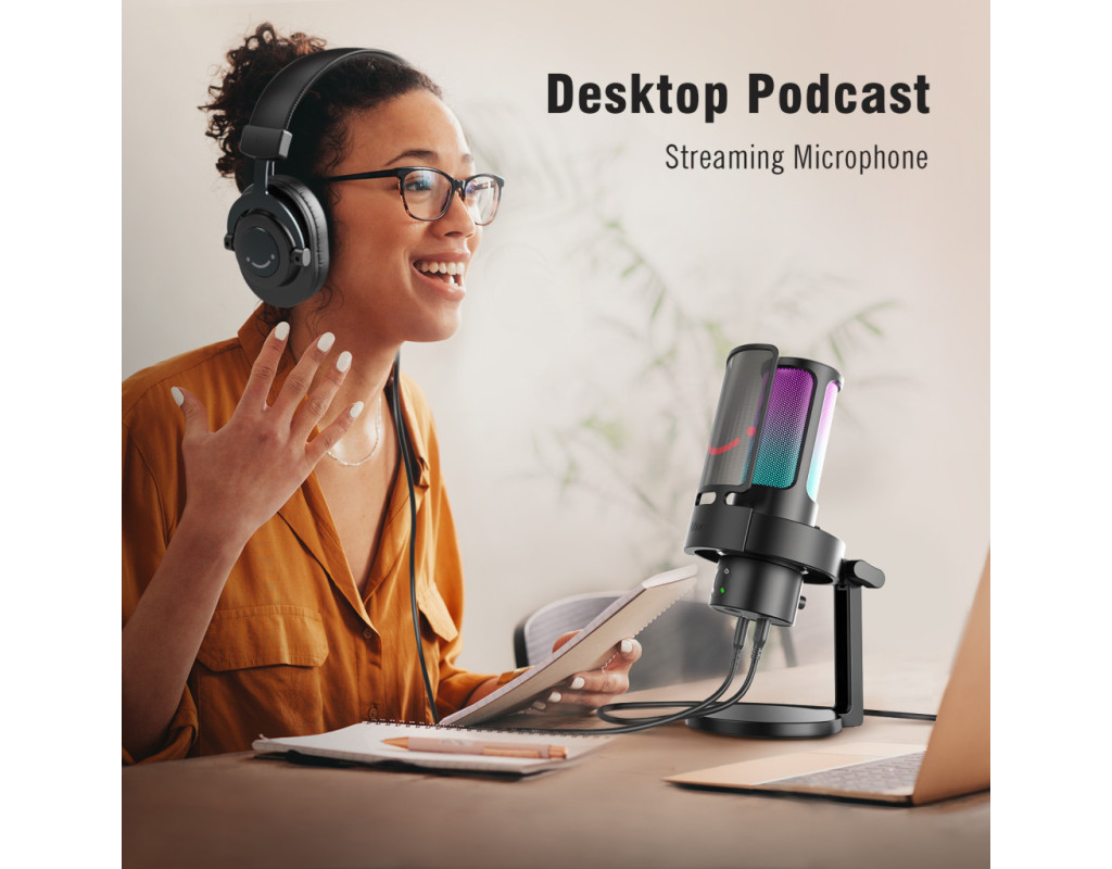 | Це більш потужний ігровий мікрофон, ніж ampligame A8. На основі A8 ми додали режим RGB, чотири полярні режими та керовані функції гучності на виході відповідно до потреб користувача. Повністю 4 режими RGB освітлення, статичні, динамічні та градієнтні ефекти дають вам різний візуальний досвід. Багаті варіанти освітлення створюють барвисту гру aura, наче ролі в грі навколо вас. Якщо є топ-список ігрових функцій, функція швидкого вимкнення звуку повинна вимагати корону. З однією інтегрованою у верхню частину, вам не потрібно запам'ятовувати ще один гарячий ключ. Щоб зробити досвід ще кращим, він чутливий до дотиків, щоб вимкнути звук, не вказуючи на інших зі звуковим натисканням. Значок світлодіодний зверху - гарантія відсутності випадкового вимкнення звуку в потоці. Насамперед ми вітаємо додавання типу c. Досить зручно використовувати навколо вашої студії, коли всі використовують один і той самий тип кабелю. Роз'єм для навушників 3.5 мм у нижній частині забезпечує функцію моніторингу. Ви можете отримати свій обсяг під час багатолюдного використання. Це чудова комбінація з регулятором посилення, щоб налаштувати гучність у часі, ґрунтуючись на teammate відгуки. Чутливі капсули можуть зробити звук вашого голосу чистим, в той час як регулювання вхідного обсягу може зменшити перешкоди фонового шуму для вас. Ми додали вихідний контроль до A8 plus, щоб вам було легше налаштувати вихідний об'єм у зручне положення для ваших вух. |